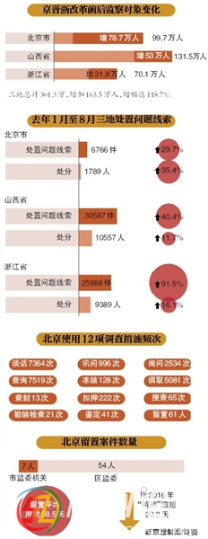正文摘要:原標(biāo)題:監(jiān)察體制改革試點(diǎn)一年,京晉浙監(jiān)察對(duì)象增163.5萬(wàn);北京留置61人,12項(xiàng)調(diào)查措施全使用 監(jiān)察對(duì)象人數(shù)增加163.5萬(wàn)人,達(dá)301.3萬(wàn)人,增幅達(dá)118.7%——一年前在京晉浙三地開(kāi)啟的監(jiān)察體制改革試點(diǎn),如今 ... |