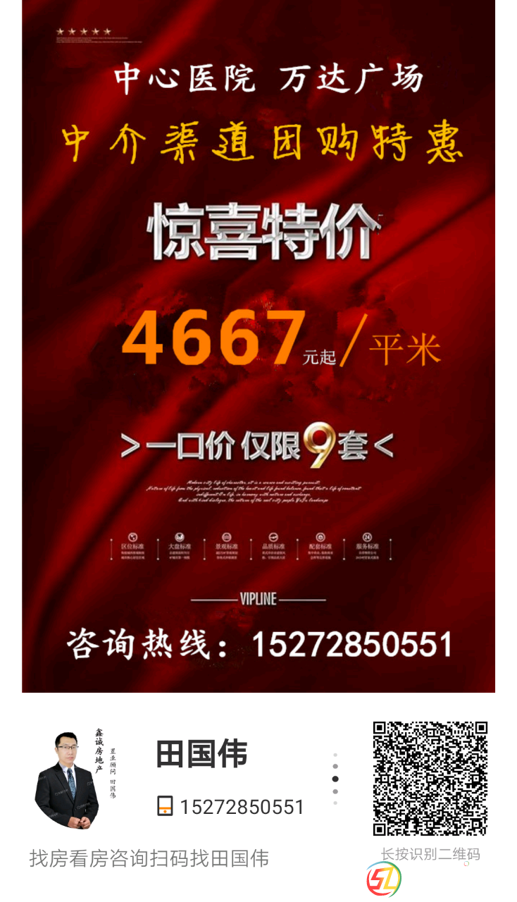 年底特惠,經(jīng)紀(jì)人專享 中心醫(yī)院,萬達(dá)廣場附近,季梁學(xué)校學(xué)區(qū)房,大型園林小區(qū),為回饋客戶,凡經(jīng)紀(jì)人帶看,享受125㎡----140㎡特價房,單價4667元/㎡起,先到先得,售完為止! 咨詢電話:15272850551 田經(jīng)理 ...