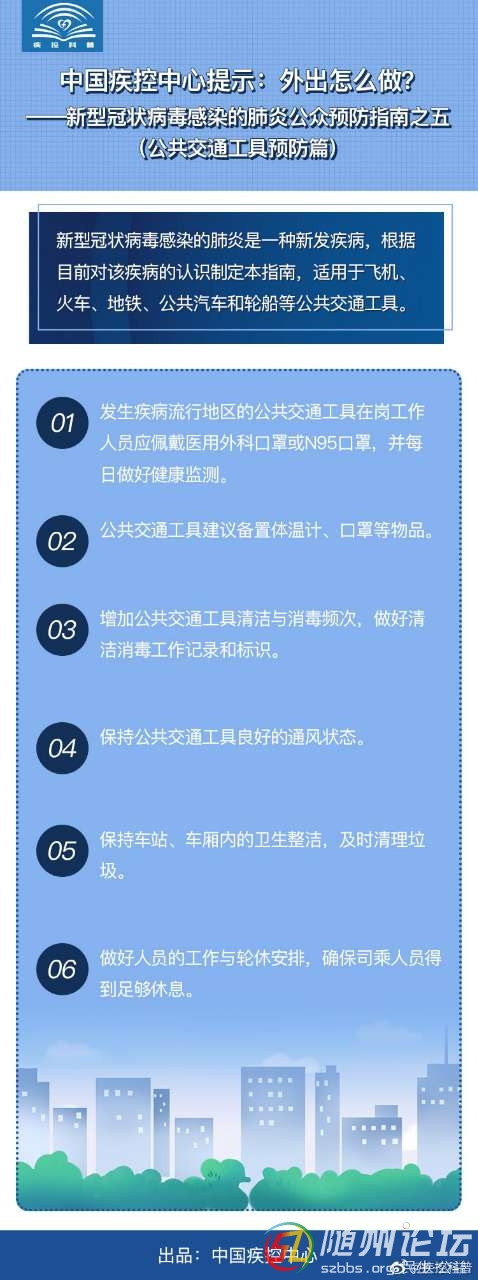 本帖最后由 隨州日?qǐng)?bào) 于 2020-1-26 10:44 編輯 4 r% j4 w. C, N- T+ o # w& Z* w, A- B: [4 A: P3 J 【中國(guó)疾控中心提示:外出怎么做?】新型冠狀病毒感染的肺炎公眾預(yù)防指南五——公共交通工具預(yù)防篇0 L, J# K4 ~2 ...