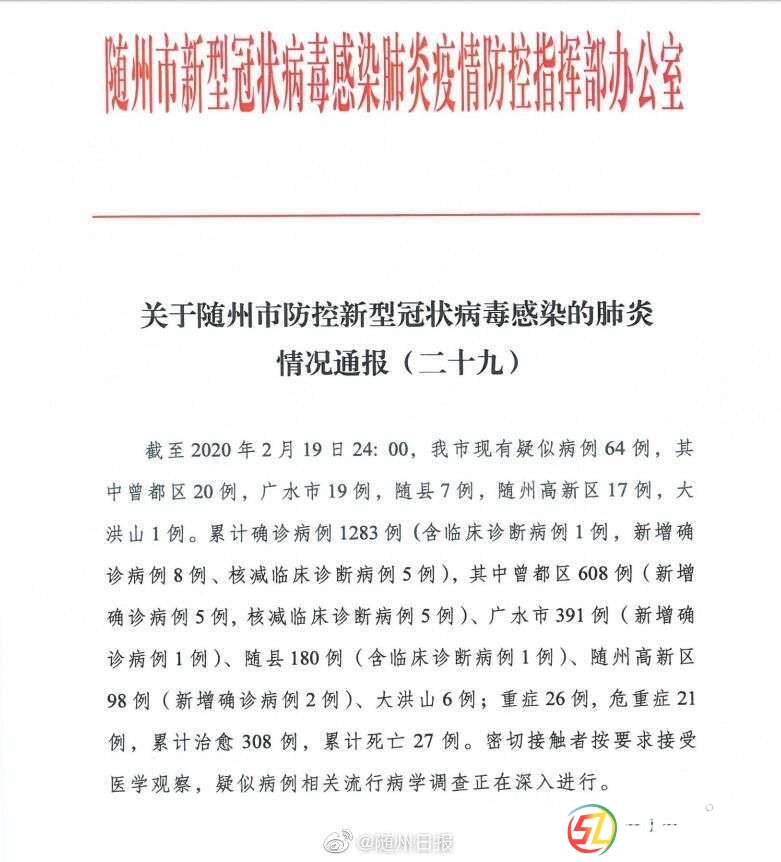 關(guān)于隨州市防控新型冠狀病毒感染的肺炎情況通報(bào)(二十九) . }' {* x+ v# W! j6 C: h # _- f: _3 b2 t6 R