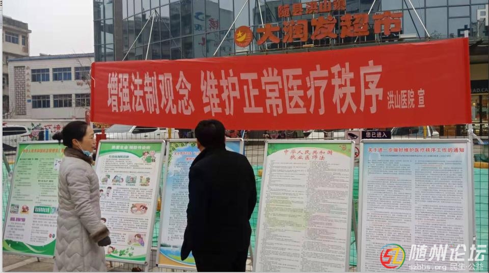 隨州論壇訊(通訊員趙楊、陳傳兵)為認(rèn)真貫徹落實(shí)衛(wèi)生法律法規(guī)知識(shí)普及工作,增強(qiáng)轄區(qū)內(nèi)居民衛(wèi)生法律法規(guī)意識(shí),從而保障人身安全,防止重大突發(fā)公共衛(wèi)生事件的發(fā)生。12月4日上午,隨縣洪山醫(yī)院以第七個(gè) ...