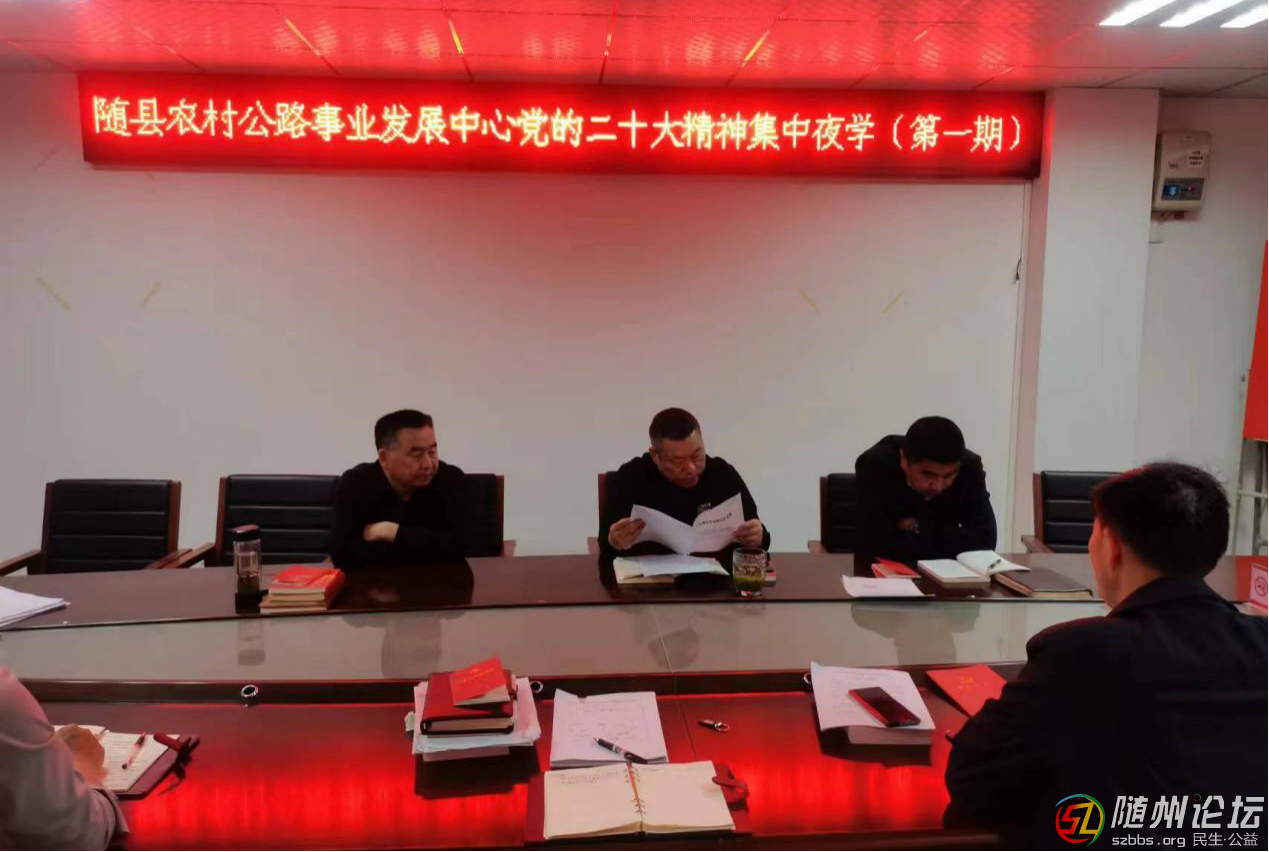 隨縣農(nóng)村公路事業(yè)發(fā)展中心開展黨的二十大精神集中夜學(xué)活動(dòng) 隨州論壇(通訊員:周濤)近日,隨縣農(nóng)村公路事業(yè)發(fā)展中心開展黨的二十大精神夜學(xué)活動(dòng),組織機(jī)關(guān)黨員干部集中學(xué)習(xí)充電,全面準(zhǔn)確學(xué)習(xí)領(lǐng)會(huì)黨的二十大精神。 ...
