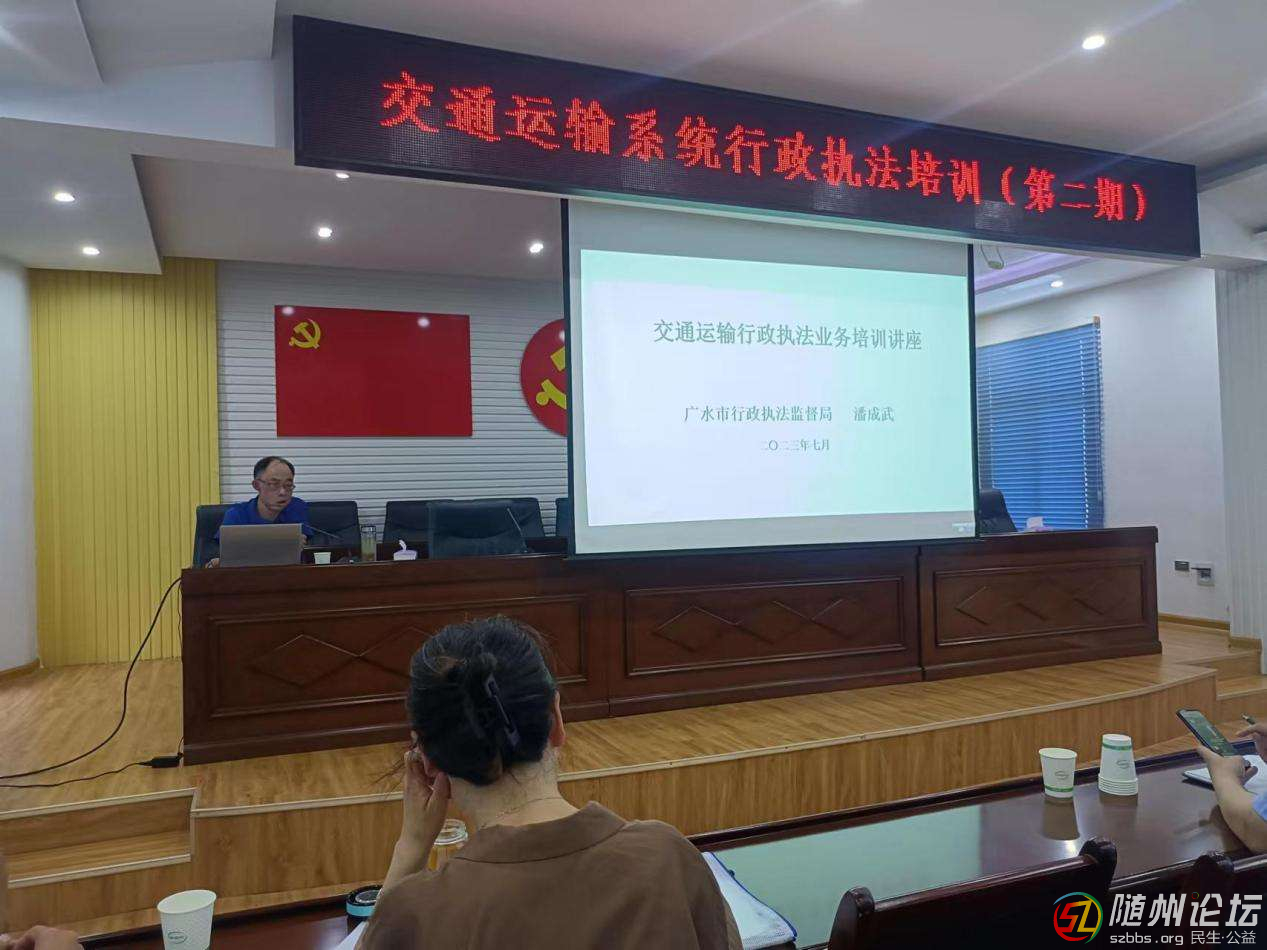 隨州論壇訊(通訊員:歐素娟)為全面規(guī)范交通綜合執(zhí)法大隊行政執(zhí)法能力,提升執(zhí)法人員綜合素質和業(yè)務水平,7月11日,廣水市交通運輸局舉辦2023年第二期交通運輸系統(tǒng)行政執(zhí)法培訓會,邀請市行政執(zhí)法監(jiān)督局副局長潘成武 ...