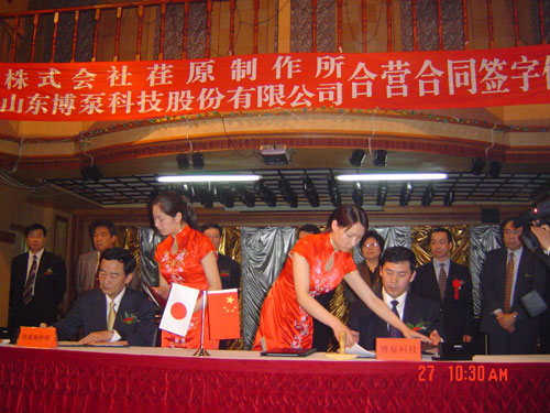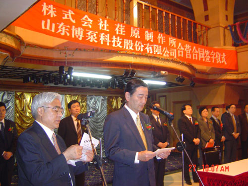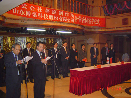新聞中心 2005年4月27日,在博山萬杰國際大酒店山東博泵科技股份有限公司與日本株式會(huì)社荏原制作所正式簽署了注冊資本1100萬美元的合營公司――荏原博泵有限責(zé)任公司。該公司的建立將通過引進(jìn)世界最大的泵企業(yè)――日本株式會(huì)社荏原制作所的先進(jìn)技術(shù),加快大型泵、高壓泵國產(chǎn)化進(jìn)程,建成具有國際競爭力的一流企業(yè)。為中國水電、核電及超臨界火電項(xiàng)目,為南水北調(diào)等大型水力工程提供高質(zhì)量、高技術(shù)含量的一流泵產(chǎn)品,提升中國機(jī)械工業(yè)技術(shù)、質(zhì)量水平,促進(jìn)產(chǎn)品更新?lián)Q代,為中國電力、冶金、水力事業(yè)的發(fā)展乃至中國國民經(jīng)濟(jì)的發(fā)展做出應(yīng)有的貢獻(xiàn)。
