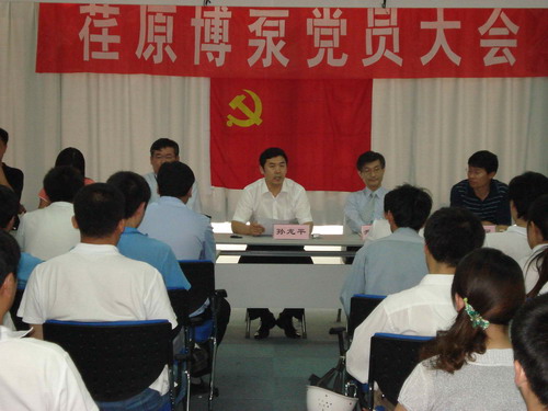 本次黨員大會由黨總支副書記姜作棟同志主持,他首先介紹了黨組織機(jī)構(gòu)的組成:張玉琴同志任黨總支書記,姜作棟同志任黨總支副書記,李正民同志、劉擁民同志、王興春同志分別任統(tǒng)戰(zhàn)委員、組織紀(jì)檢委員、文體宣傳委員。荏原博泵黨總支下設(shè)管理、生產(chǎn)、質(zhì)量和業(yè)務(wù)技術(shù)四個黨支部,管理黨支部書記由邱建剛同志擔(dān)任,生產(chǎn)黨支部書記由宋遵民同志擔(dān)任,質(zhì)量黨支部書記由郝圣同志擔(dān)任,業(yè)務(wù)技術(shù)黨支部書記由梁文運(yùn)同志擔(dān)任。各黨支部通過民主選舉選出了支部委員。在會上,黨總支書記張玉琴同志向全體黨員提出要求,一是加強(qiáng)學(xué)習(xí),提高素質(zhì);二是增強(qiáng)黨性,努力工作;三是加強(qiáng)領(lǐng)導(dǎo),發(fā)揮作用。著重強(qiáng)調(diào)了全體黨員不僅要有較高的政治素質(zhì),更要有很強(qiáng)的業(yè)務(wù)能力和技術(shù)水平。要一如既往的發(fā)揮黨員的先鋒模范作用,以企業(yè)經(jīng)濟(jì)發(fā)展為中心任務(wù),身先士卒,帶頭努力干好工作,在營造團(tuán)結(jié)和諧的工作氛圍中發(fā)揮作用。公司總經(jīng)理孫龍平同志在黨員大會上代表行政領(lǐng)導(dǎo)班子作了重要發(fā)言,指出目前公司正處在打基礎(chǔ)的關(guān)鍵時期,邊建設(shè)、邊生產(chǎn)、邊供貨、邊發(fā)展。黨組織要充分發(fā)揮政治核心作用,領(lǐng)導(dǎo)工會、共青團(tuán)等群眾組織,團(tuán)結(jié)凝聚廣大員工,貫徹黨的方針政策,促進(jìn)企業(yè)健康發(fā)展。