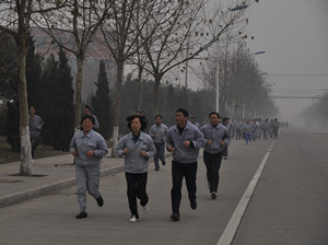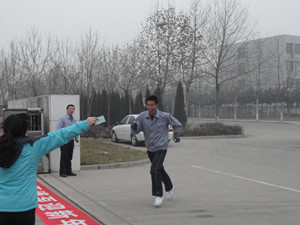下午4點(diǎn),隨著副總經(jīng)理王興春手中的發(fā)令槍響,員工們爭先恐后的向前沖去。沿著開發(fā)區(qū)北路望去,身著工作服的員工如一條長龍,蜿蜒向前。迎著凜冽的寒風(fēng),大家你追我趕,熱情高漲。女員工們也毫不示弱,巾幗不讓須眉。最終,3000米的路程,質(zhì)量部的張洪云以19′10″,奪得女子組第一名,第二名是生產(chǎn)部的胡俊,第三名是公司食堂的萬寶瑋;男子組第一名是營業(yè)部的楊大帥,成績是13′50″,他也是我公司蟬聯(lián)三屆的長跑冠軍,第二名是生產(chǎn)部的翟海波,第三名是副總經(jīng)理姜作棟。