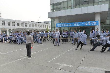 4月30日下午,公司工會舉辦的第八屆慶“五一”拔河比賽在辦公樓前舉行。